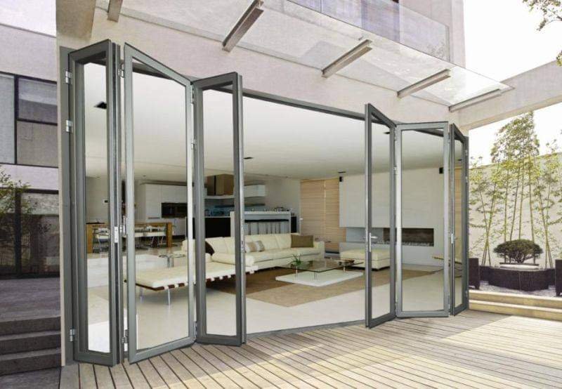 When closed, Slide & Fold doors appear to be a wall of beautiful hinged doors. Fold open the doors and the wall virtually disappears leaving an unobstructed opening.
